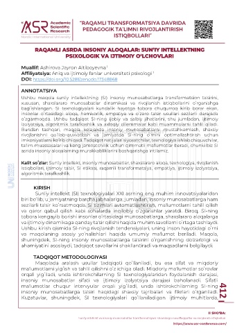Page 414 - RAQAMLI TRANSFORMATSIYA DAVRIDA PEDAGOGIK TA’LIMNI RIVOJLANTIRISH ISTIQBOLLARI