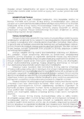 boshqa manbalar tahlil qilinadi. SI-ning insoniy munosabatlarga taʼsiri, mavjud