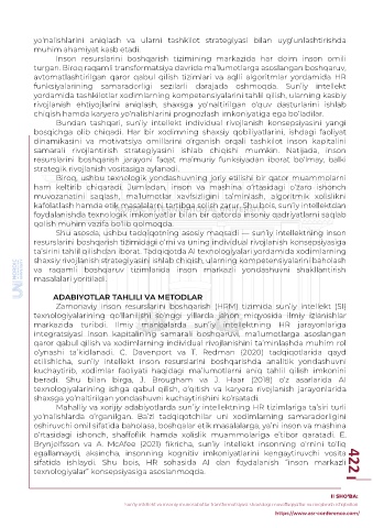 Zamonaviy inson resurslarini boshqarish (HRM) tizimida sun’iy intellekt (SI)