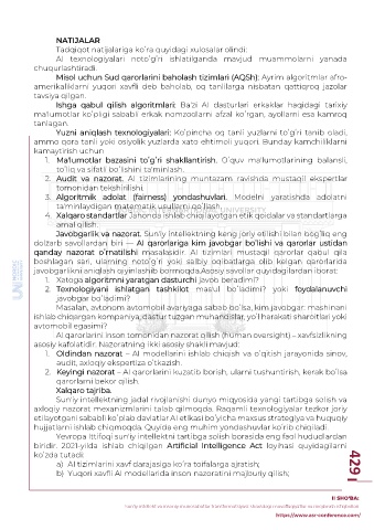 2. Audit va nazorat. AI tizimlarining muntazam ravishda mustaqil ekspertlar