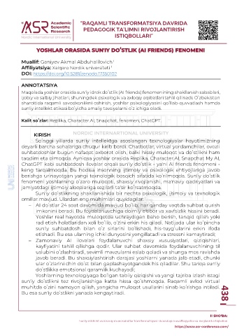 Maqolada yoshlar orasida sunʼiy idrok doʻstlik (AI friends) fenomenining shakllanish sabablari,