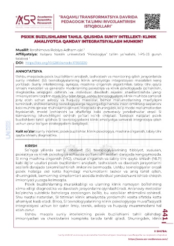 Ushbu maqola sunʼiy intellektning psixik buzilishlarni tahlil qilishdagi 441