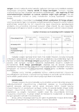 Olingan natijalar shuni koʻrsatadiki, sunʼiy intellekt yordamida taʼlim jarayonini