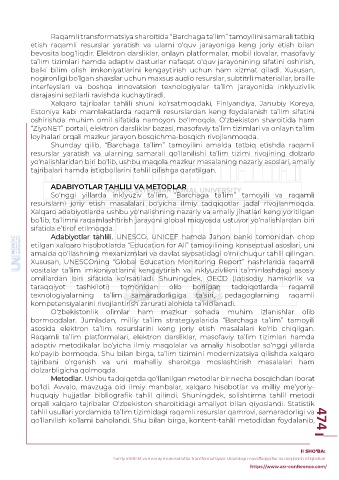Page 476 - RAQAMLI TRANSFORMATSIYA DAVRIDA PEDAGOGIK TA’LIMNI RIVOJLANTIRISH ISTIQBOLLARI