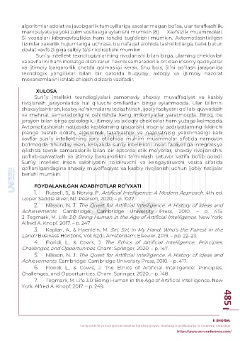 Page 487 - RAQAMLI TRANSFORMATSIYA DAVRIDA PEDAGOGIK TA’LIMNI RIVOJLANTIRISH ISTIQBOLLARI