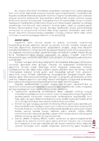 kelib, inson qarorlarini toraytiradi. Tadqiqotlar shuni koʻrsatmoqdaki, onlayn muhitda