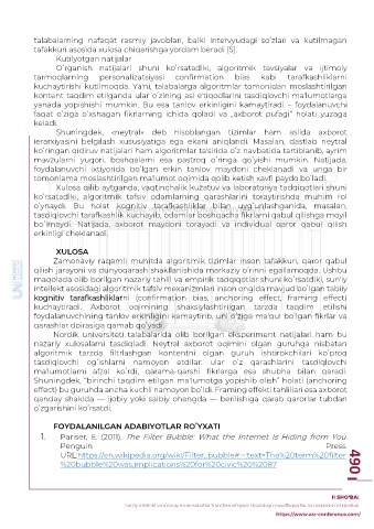 tarmoqlarning personalizatsiyasi confirmation bias kabi tarafkashliklarni