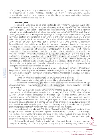 Xulosa qilib aytganda, Oʻzbekistonda ingliz tilini oʻqitish tizimi tarixan muayyan 493