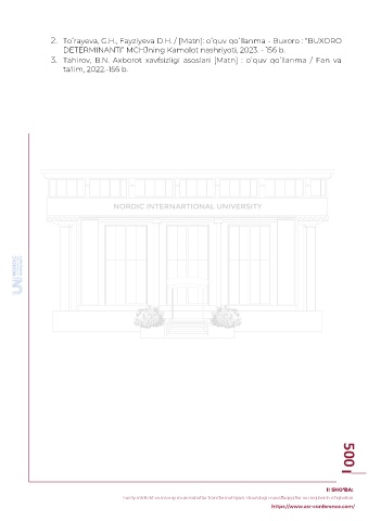 2. Toʻrayeva, G.H., Fayziyeva D.H. / [Matn]: oʻquv qoʻllanma - Buxoro : “BUXORO