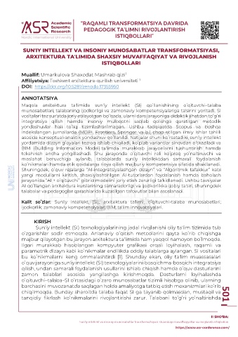 Page 503 - RAQAMLI TRANSFORMATSIYA DAVRIDA PEDAGOGIK TA’LIMNI RIVOJLANTIRISH ISTIQBOLLARI
