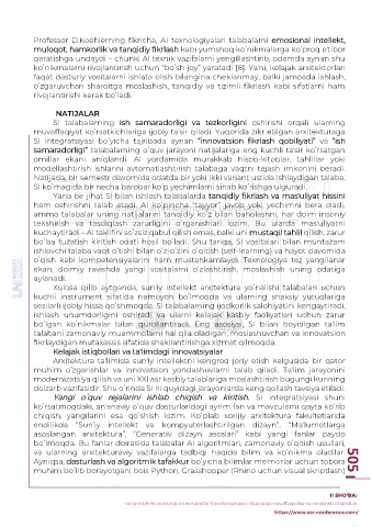 Ayniqsa, dasturlash va algoritmik tafakkur boʻyicha bilimlar meʼmorlar uchun tobora 505