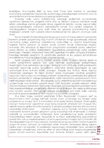 Shunday qilib, sun’iy intellektning OAVdagi qo‘llanilishi jurnalistikada