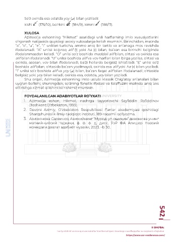 Azimxo‘ja eshonning “Hikmat” asaridagi unli harflarning imlo xususiyatlarini