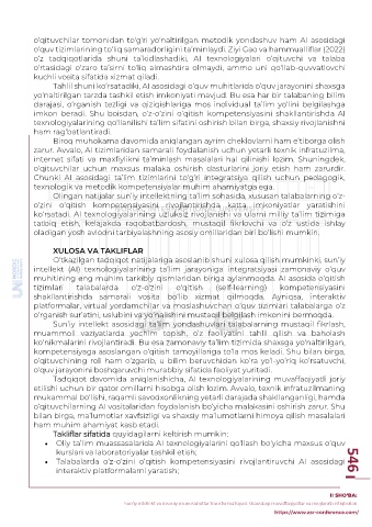 Page 548 - RAQAMLI TRANSFORMATSIYA DAVRIDA PEDAGOGIK TA’LIMNI RIVOJLANTIRISH ISTIQBOLLARI