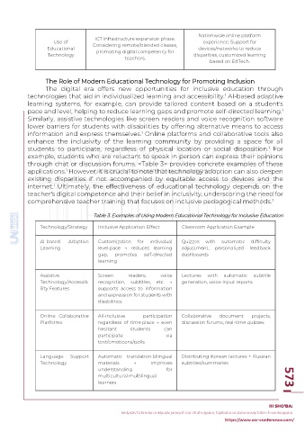 Table 3. Examples of Using Modern Educational Technology for Inclusive Education