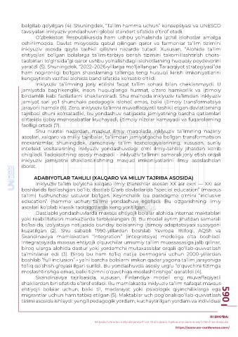 belgilab qo‘yilgan (4). Shuningdek, “Ta’lim hamma uchun” konsepsiyasi va UNESCO