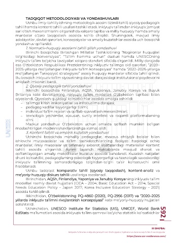 tahlil hamda kontent tahlili usullari tashkil etadi. Inklyuziv ta’limdan inklyuziv jamiyat