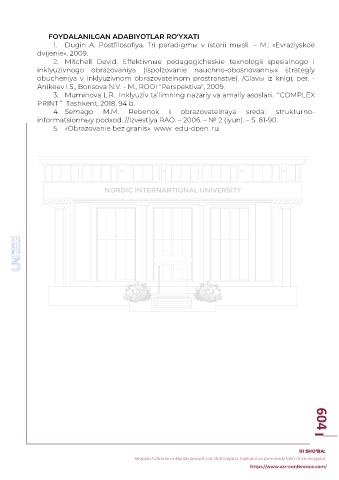 Page 606 - RAQAMLI TRANSFORMATSIYA DAVRIDA PEDAGOGIK TA’LIMNI RIVOJLANTIRISH ISTIQBOLLARI