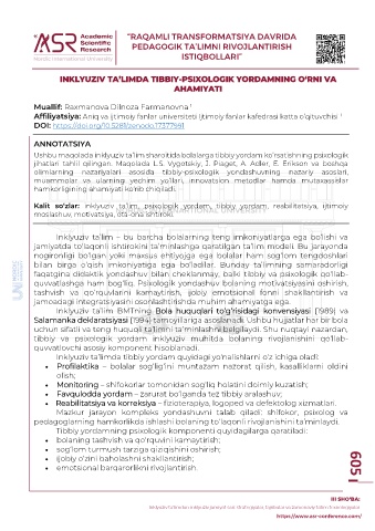INKLYUZIV TA’LIMDA TIBBIY-PSIXOLOGIK YORDAMNING O‘RNI VA
