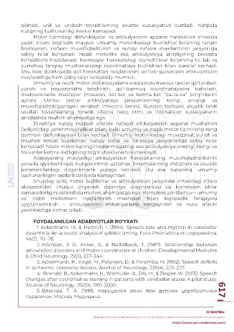 aloqadorlikni chuqur o‘rganish dizartriya diagnostikasi va korreksion ishlar