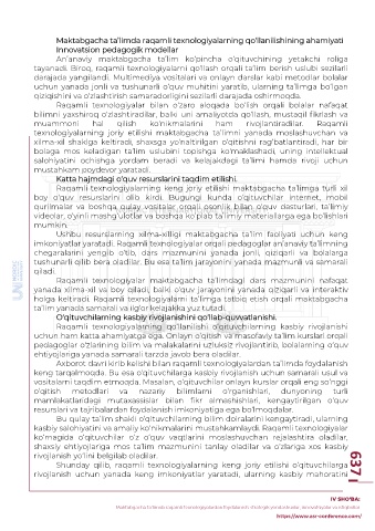 Shunday qilib, raqamli texnologiyalarning keng joriy etilishi o‘qituvchilarga 637