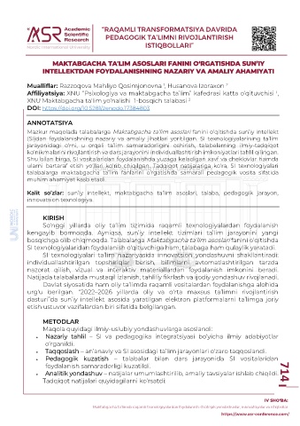 Page 716 - RAQAMLI TRANSFORMATSIYA DAVRIDA PEDAGOGIK TA’LIMNI RIVOJLANTIRISH ISTIQBOLLARI