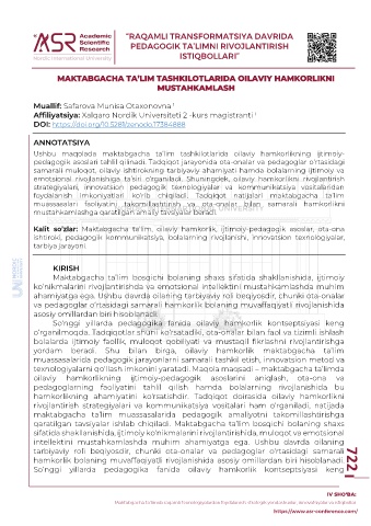 pedagogik asoslari tahlil qilinadi. Tadqiqot jarayonida ota-onalar va pedagoglar o‘rtasidagi