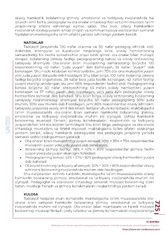 onalar bilan samarali hamkorlik bolalarning ijtimoiy, emotsional va tarbiyaviy