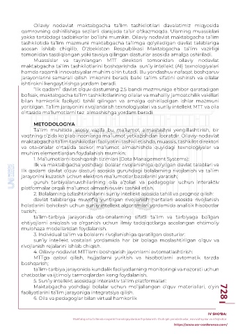 yoritilgan. Ta’lim jarayonini rivojlantirish texnologiyalari va sun’iy intellekt MTT va oila