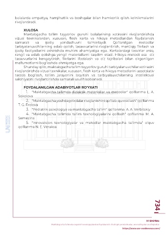 Page 736 - RAQAMLI TRANSFORMATSIYA DAVRIDA PEDAGOGIK TA’LIMNI RIVOJLANTIRISH ISTIQBOLLARI