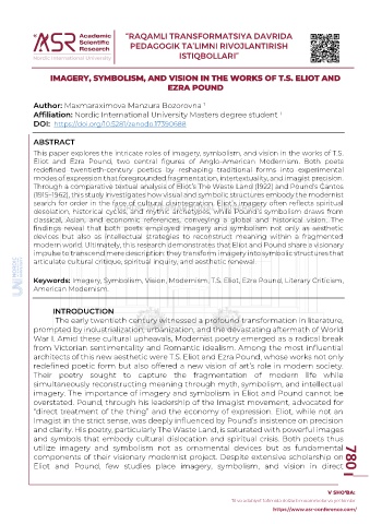 Keywords: Imagery, Symbolism, Vision, Modernism, T.S. Eliot, Ezra Pound, Literary Criticism,