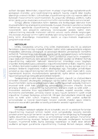 qo‘llanildi. Tadqiqotning metodologik asosini tizimli, kompetensiyaviy va faoliyatga