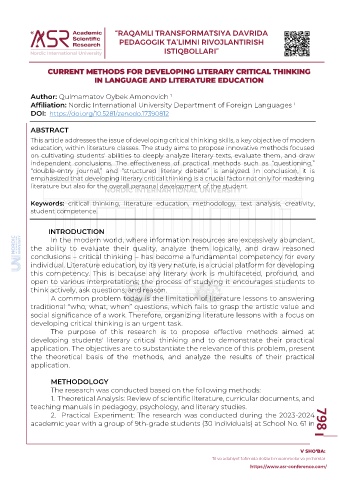 CURRENT METHODS FOR DEVELOPING LITERARY CRITICAL THINKING