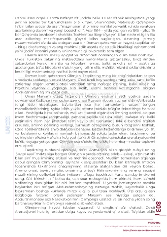 qiladi. Yoshligida biroz bo‘lsa-da, eski xat – savod olganidan ilmning qadrini, o‘qigan