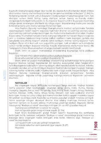 keltirilgan bo‘lib, tadqiqot natijasida “Badoye ul-vasat” devonidagi g‘azal matnining