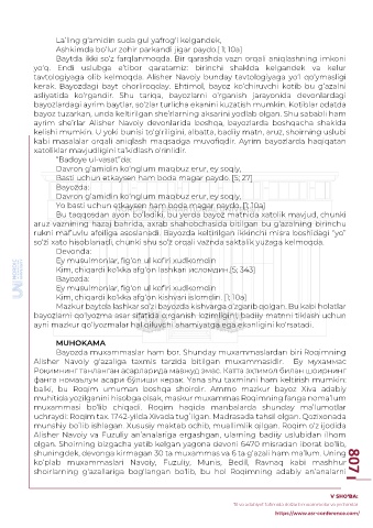 ko‘plab muxammaslari Navoiy, Fuzuliy, Munis, Bedil, Ravnaq kabi mashhur 807