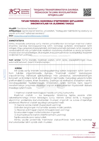 Page 81 - RAQAMLI TRANSFORMATSIYA DAVRIDA PEDAGOGIK TA’LIMNI RIVOJLANTIRISH ISTIQBOLLARI