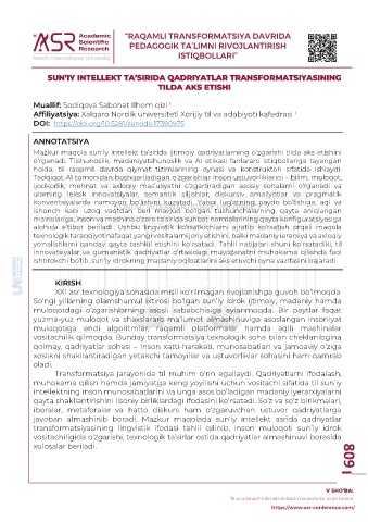 transformatsiyasining lingvistik ifodasi tahlil qilinib, inson muloqoti sun’iy idrok