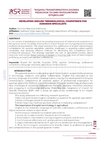 Keywords: English for Specific Purposes (ESP), agrarian terminology, professional