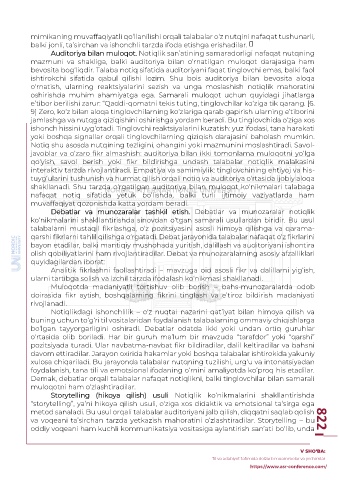 bevosita bog‘liqdir. Talaba notiq sifatida auditoriyani faqat tinglovchi emas, balki faol
