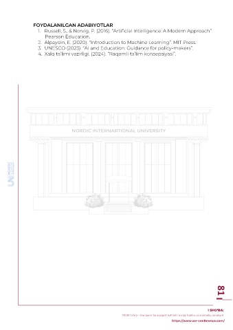 Page 83 - RAQAMLI TRANSFORMATSIYA DAVRIDA PEDAGOGIK TA’LIMNI RIVOJLANTIRISH ISTIQBOLLARI
