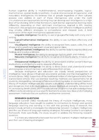 differently, depending on their dominant intelligences. Applied to EFL reading