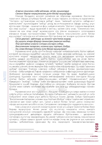 “Висолин ким тиларсен, нозини хуш тортқил, Бобур” сатри “севгининг оғриғини,