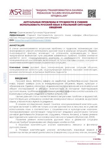 Page 872 - RAQAMLI TRANSFORMATSIYA DAVRIDA PEDAGOGIK TA’LIMNI RIVOJLANTIRISH ISTIQBOLLARI