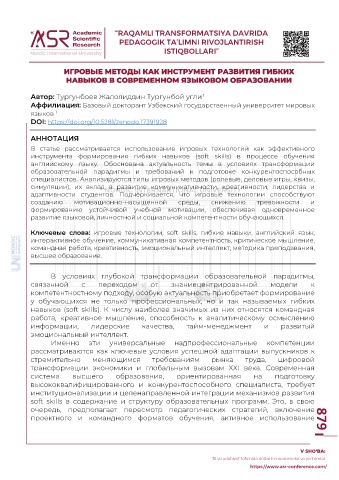 Page 881 - RAQAMLI TRANSFORMATSIYA DAVRIDA PEDAGOGIK TA’LIMNI RIVOJLANTIRISH ISTIQBOLLARI