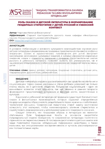 ГЕНДЕРНЫХ СТЕРЕОТИПОВ У ДЕТЕЙ: РУССКИЙ И УЗБЕКСКИЙ