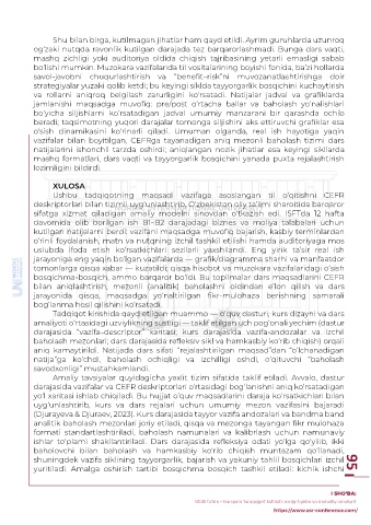 deskriptorlari bilan tizimli uyg‘unlashtirib, O‘zbekiston oliy ta’limi sharoitida barqaror