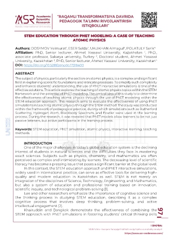 Keywords: STEM education, PhET simulation, atomic physics, interactive learning, teaching
