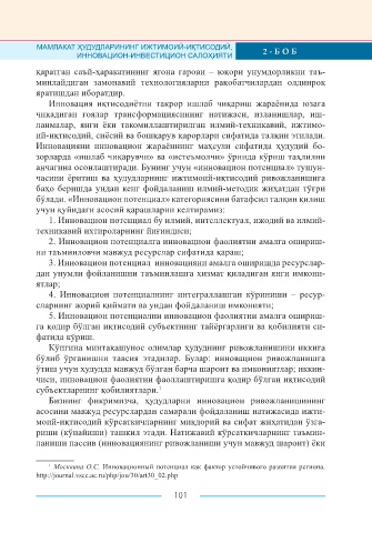 ўз тадқиқотларида эътибор қаратишган. Уларнинг илмий изланишла- анчагина осонлаштиради. Бунинг учун «инновацион потенциал» тушун-