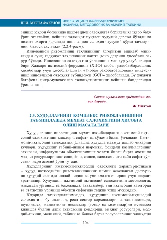 Page 104 - ИНВЕСТИЦИОН ЖОЗИБАДОРЛИКНИНГ НАЗАРИЙ, МЕТОДОЛОГИК ВА АМАЛИЙ ТАЛҚИНИ